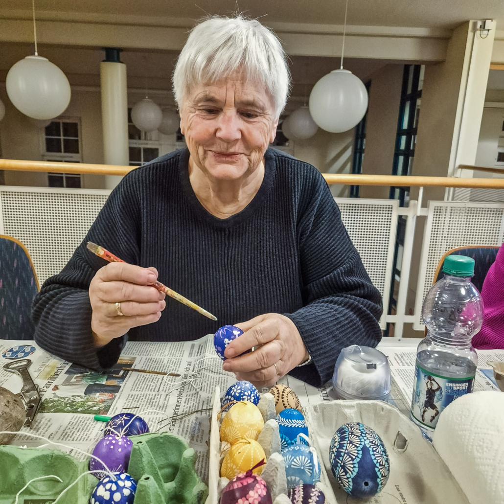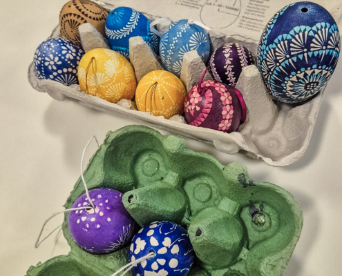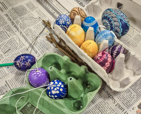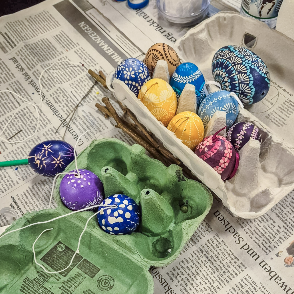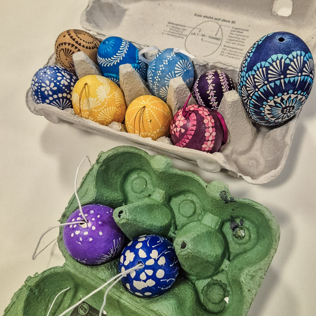 Wunderschöne gebatikte Ostereier wurden unter der Anleitung von Marlene Gerstberger hergestellt.