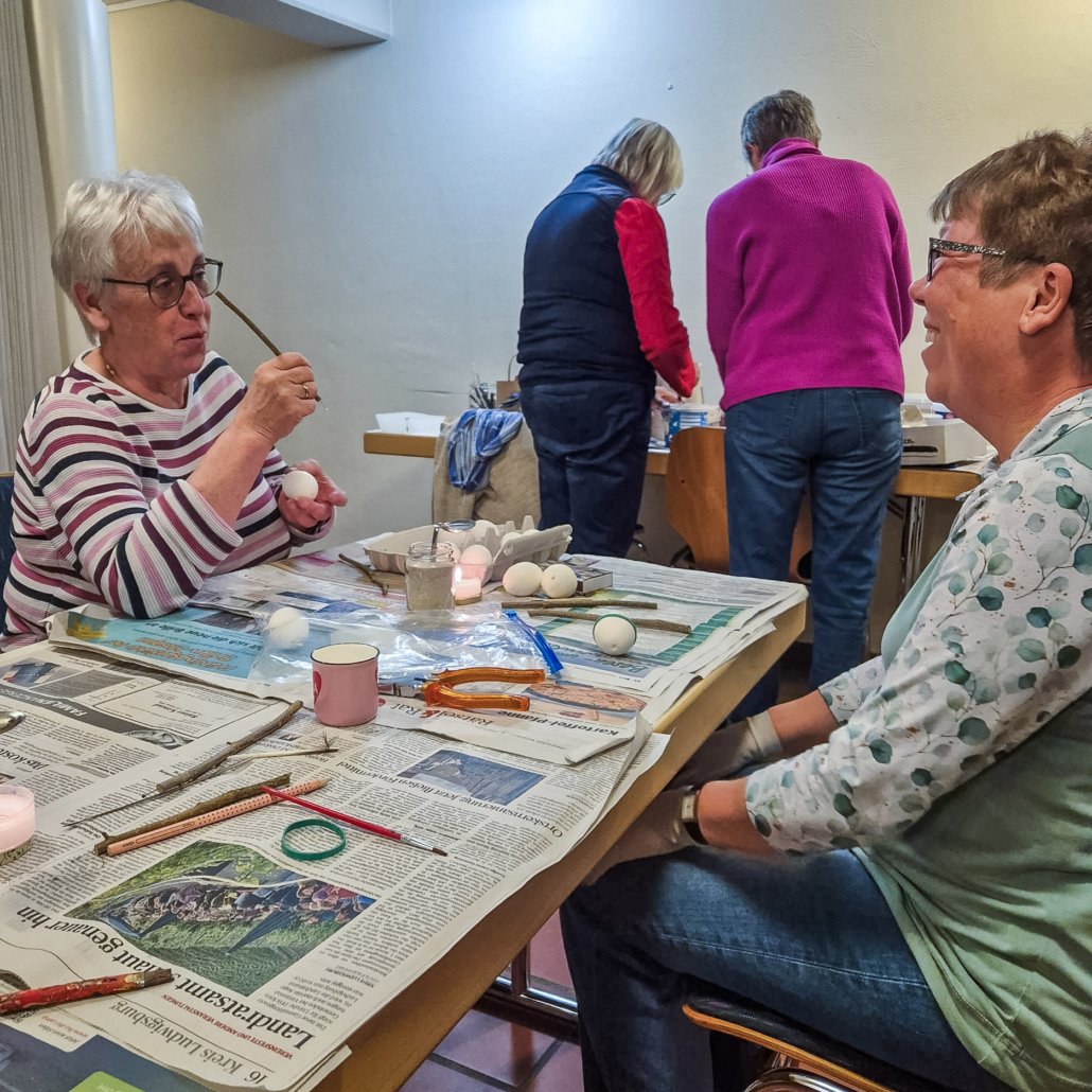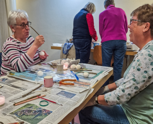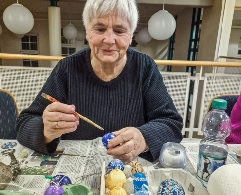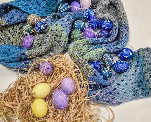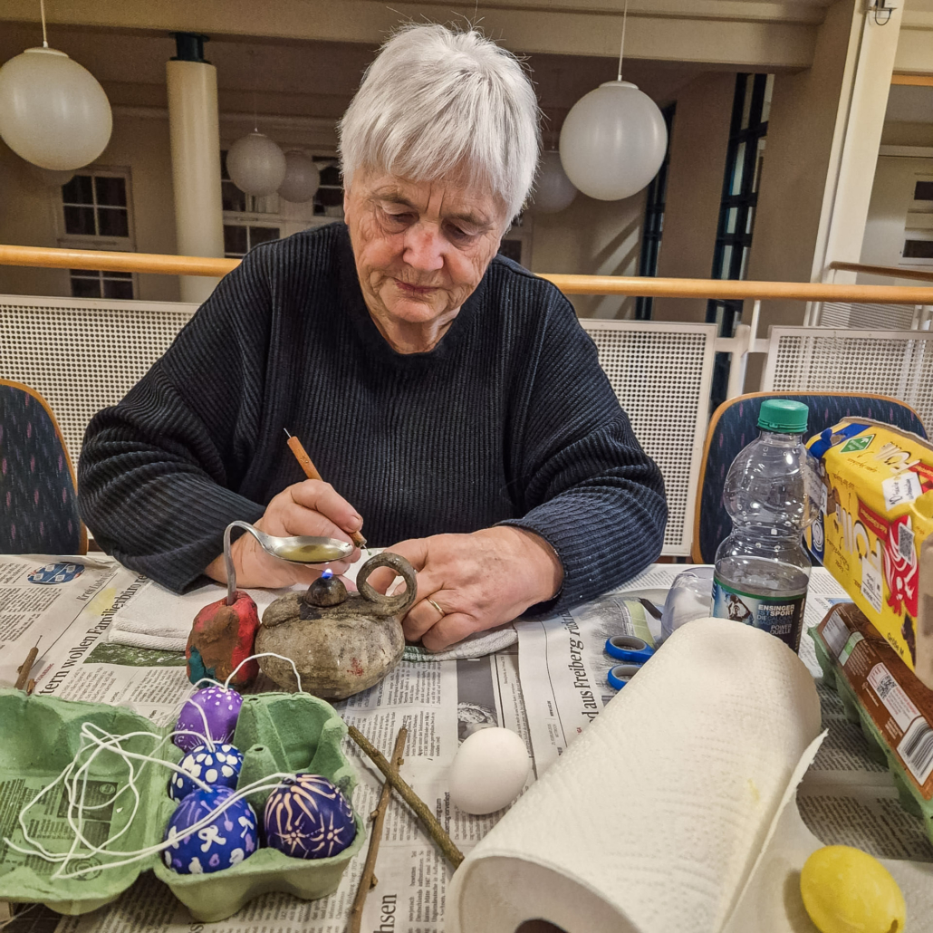 Wunderschöne gebatikte Ostereier wurden unter der Anleitung von Marlene Gerstberger hergestellt.