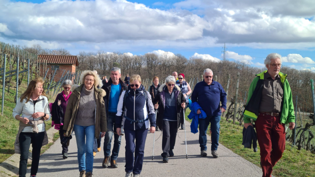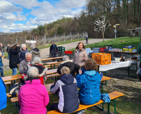Um 11 Uhr ging es am Parkplatz an der Stadtmauer los, Richtung Kleinbottwar, über die Weinberge am Bening bis zum Forsthof. Von dort aus durch den Wald bis zum Harzberg und hinauf zum Harzberghäusle. Dort wurden wir von Martin und Michael bereits erwartet. Die beiden hatten alles bestens für uns vorbereitet. Tische und Bänke waren aufgebaut, Getränke und leckeres Grillgut stand bereit. Martin, unser Grillmeister, hatte wieder gezaubert. Es gab Lachs, der auf dem Grill geräuchert und dann ganz langsam gegart wurde, saftigen Schweinehals und Würste. Superlecker!